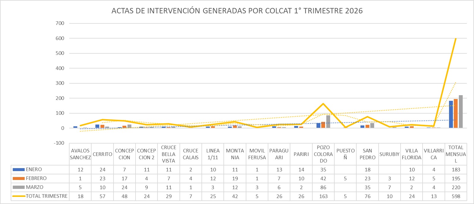 Mariano Roque Alonso, (ARP)-- La Comisión de Lucha contra el Abigeato (COLCAT) de la Asociación Rural del Paraguay (ARP) reporta un incremento sostenido en la detección de irregularidades durante el primer trimestre de 2026, con un total de 598 Actas de Intervención labradas en controles a nivel nacional.