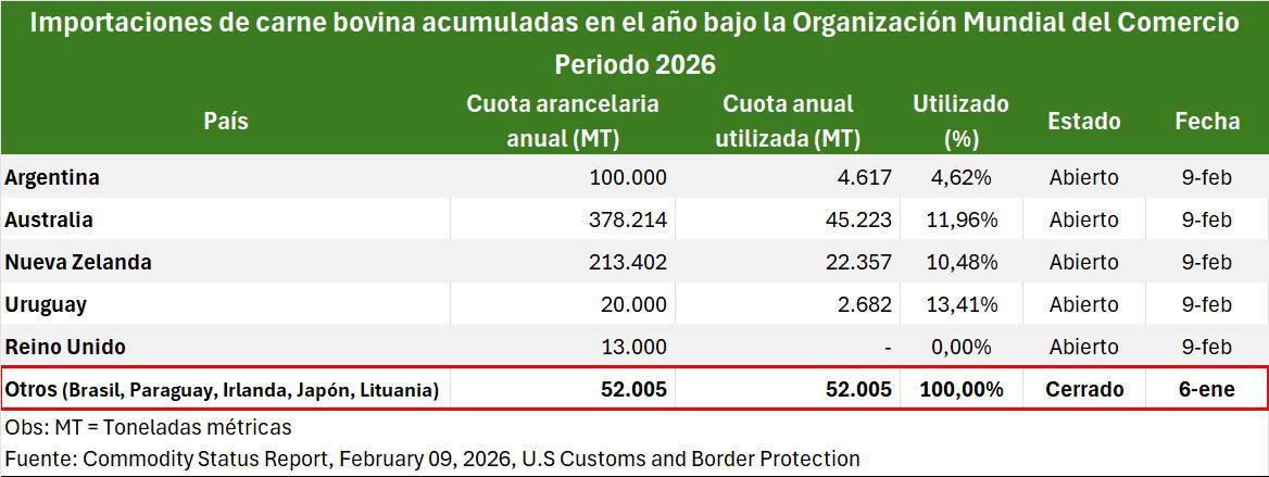 Hay que tener en cuenta que los demás países del Mercosur tienen una Cuota Propia en los Estados Unidos, destacando que Paraguay a diferencia de los demás países prescinde de negociar con China.
